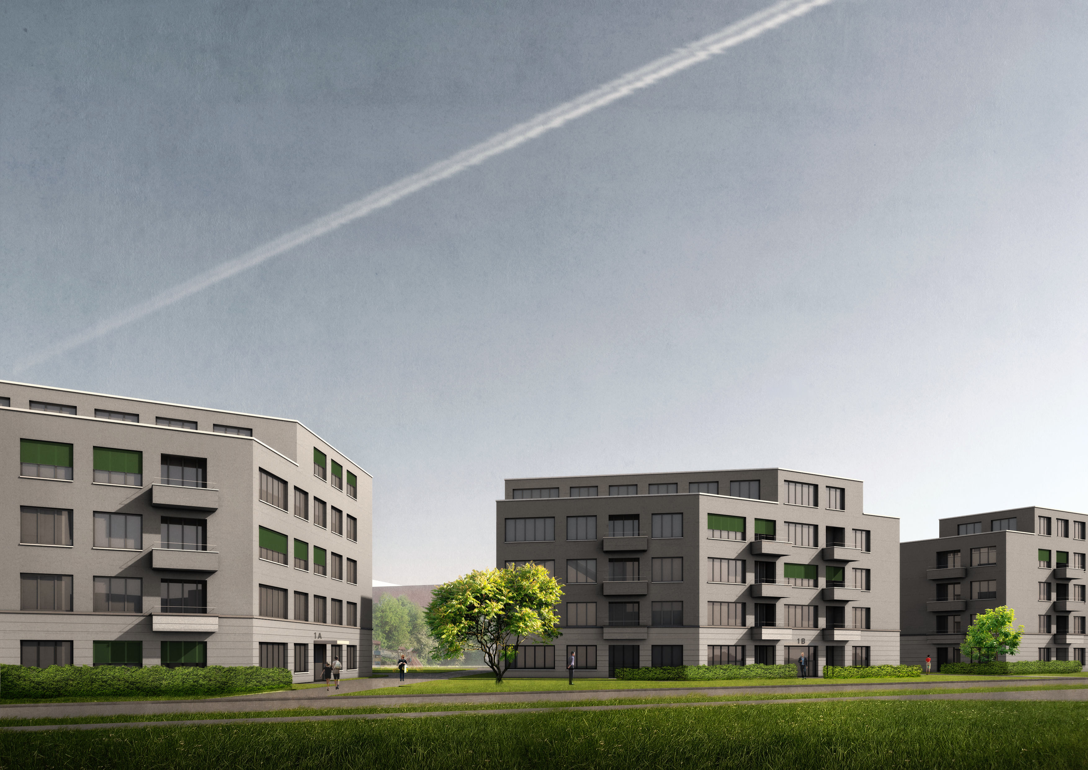 creating a clearly recognizable family resemblance. A shared entrance plaza on