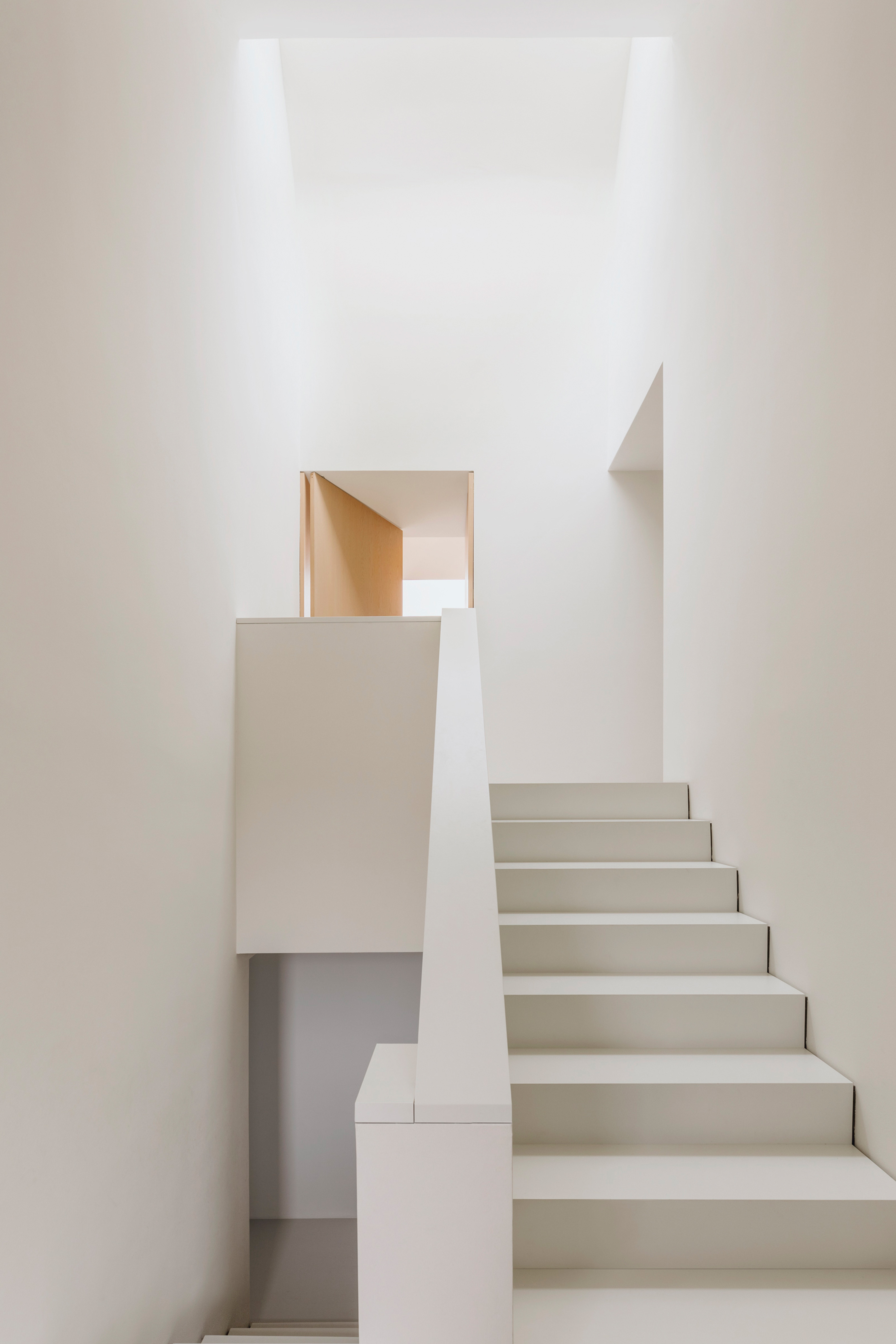 The maisonette apartment in Berlin’s Prenzlauer Berg district is located in the front building of a Wilhelminian-era multi-family house. Over the years, the surfaces and spatial divisions had been altered multiple times, resulting in a heterogeneous appearance. The internal staircase was too steep and therefore only of limited use for the residents, a young family.